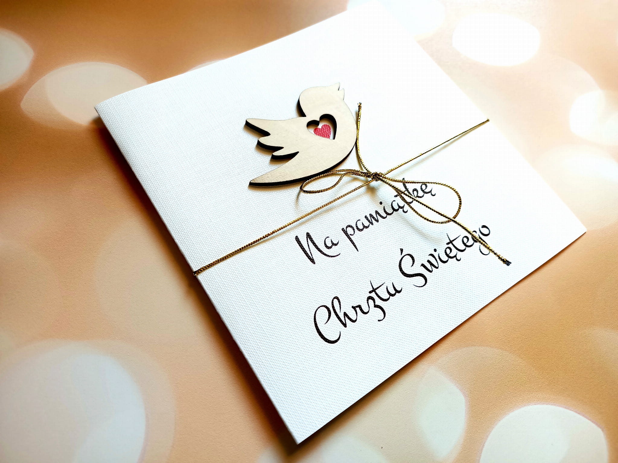 Kartka z okazji Chrztu Świętego wykonana ręcznie, w środku nadrukowane życzenia.