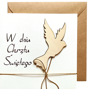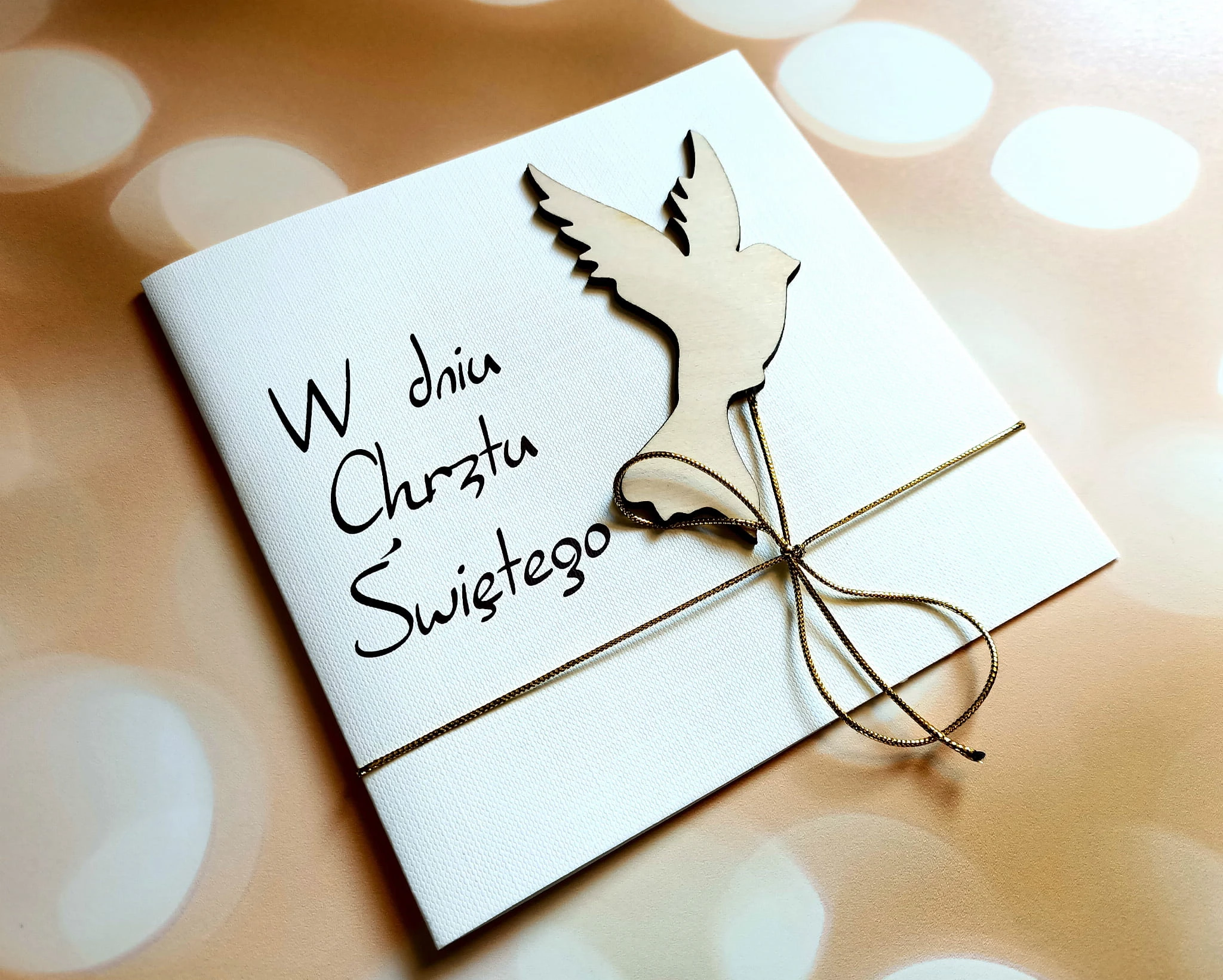 W środku pełne życzliwości życzenia, wystarczy się podpisać...Na tym polega ich czar i urok, piękna kolorystyka, z elementem drewna, przechowywane będą przez lata.