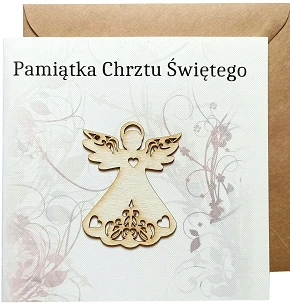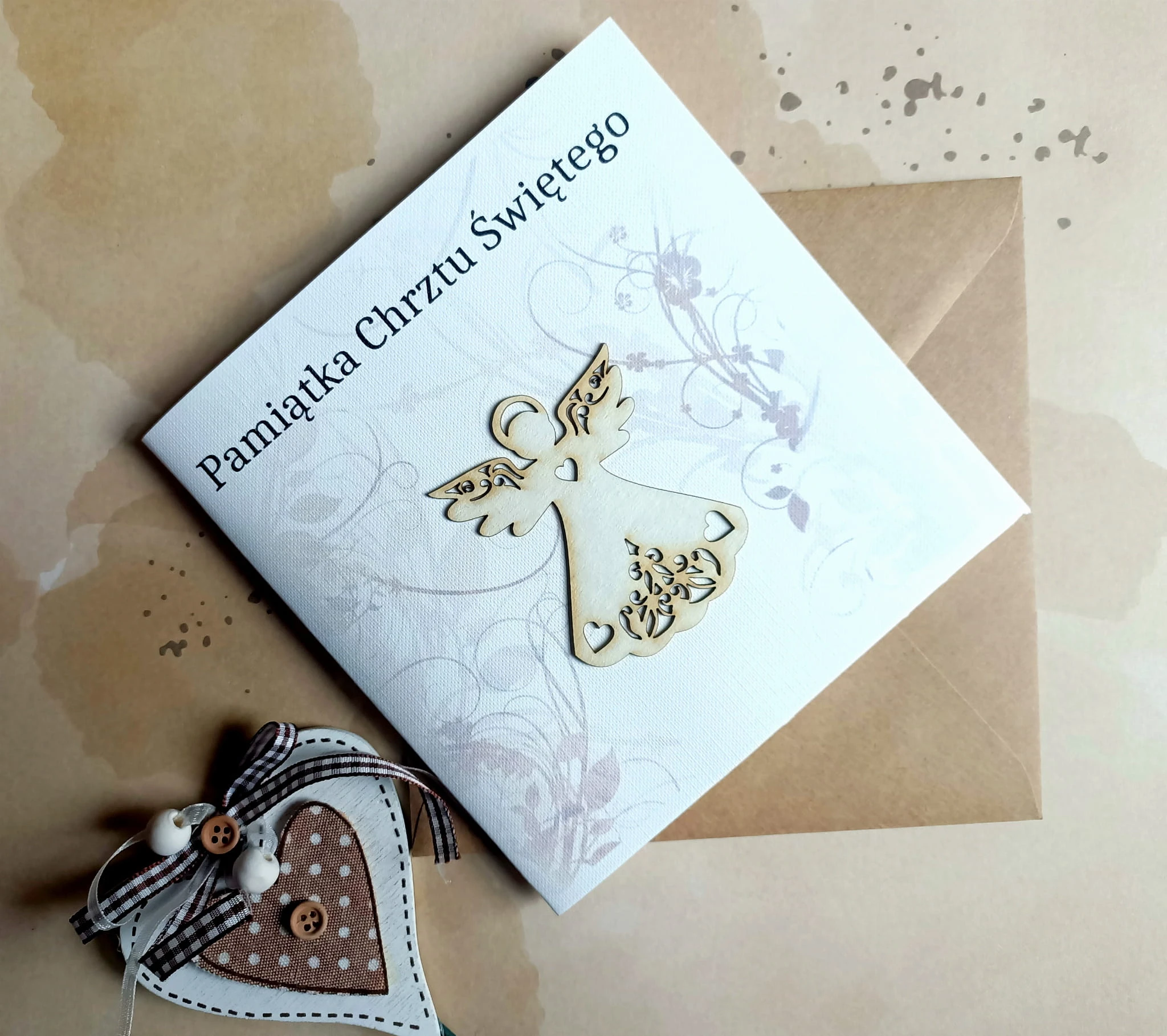 Kartka z okazji Chrztu Świętego wykonana ręcznie, w środku nadrukowane życzenia.